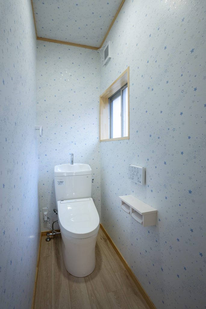 「内装にこだわってみたい」というお客様の要望があり、蓄光タイプの壁紙を使用しました。